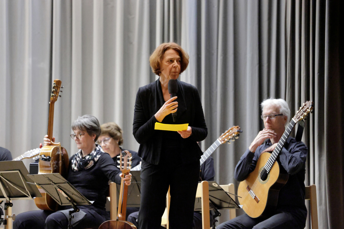 Die Dirigentin Melina Murray hatte das Orchester vorbildlich auf die verschiedenen Klangwelten und Spielweisen des breit gestreuten Programms eingestimmt und bereicherte die Aufführung wie immer mit ihrer kurzweiligen Moderation. Die neue Präsidentin des MOZ, Petra Weiss, konnte außerdem zwei neue Mitspieler:innen für die Mandola- und Gitarrenstimme auf der Bühne begrüssen.
