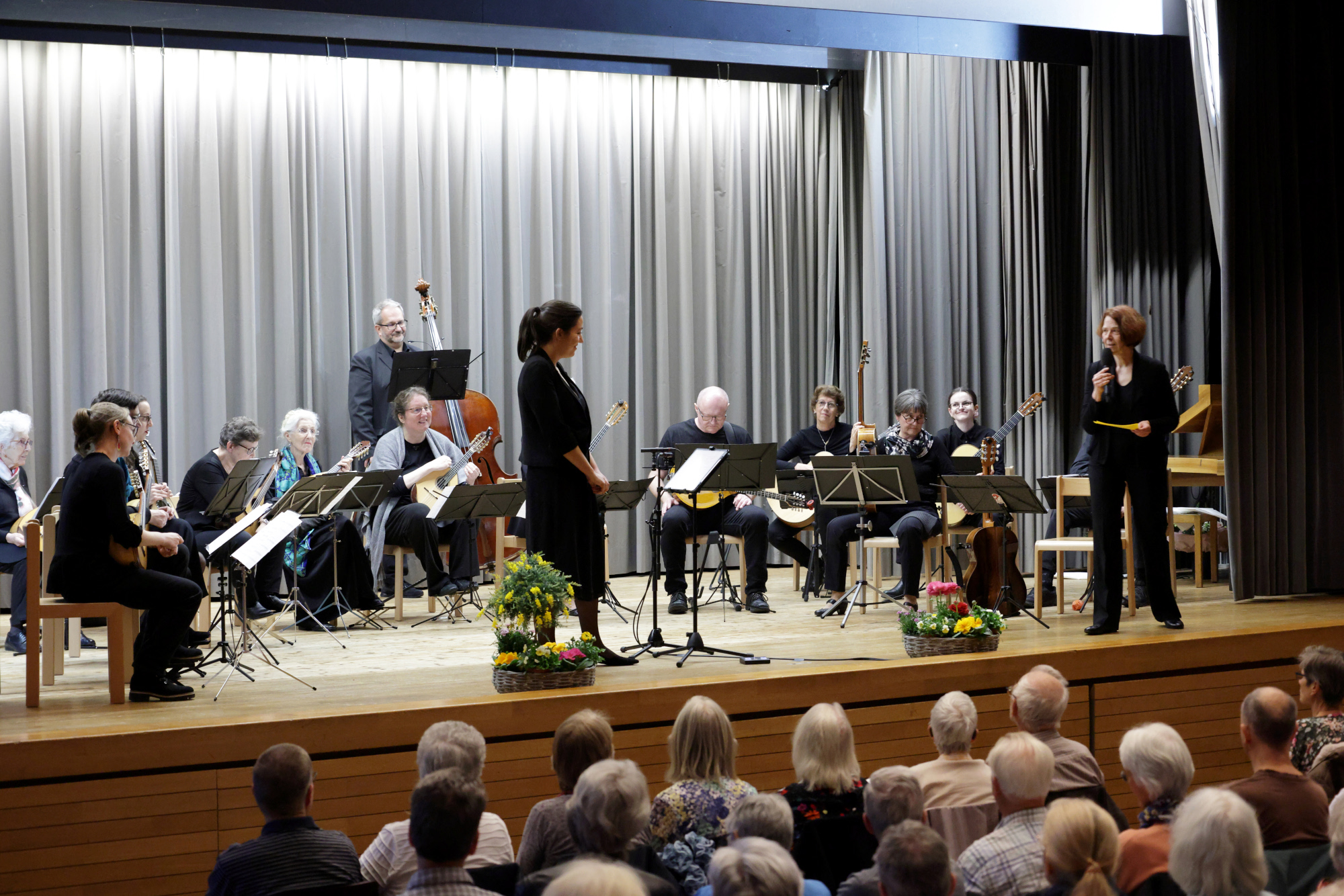 Der beschwingte Konzertbeginn setzte sich auch in einer Tanzsuite aus dem 16. Jahrhundert von Anthony Holborne fort, zu denen man sich leicht auch die dazu tänzelnde Königin Elisabeth I. vorstellen konnte. Zeitgenössische Originalwerke für Zupforchester bildeten die imposante Mitte des Konzerts und führten das beeindruckte Publikum mit der Okinawa-Suite der japanischen Komponistin Miwa Naito zunächst mit leichten fernöstlichen Klangeinflüssen nach Japan, bevor zwei Sätze aus der Bulgarischen Suite von Nikolai Kaufman durch ihre ungewohnten ungeraden Tanzmetren aufhorchen liessen. Nach einem kurzen Renaissance-Interlude mit drei „Florentiner Hochzeitstänzen“ von Siegfried Behrend überzeugten die „Dances for the Mandolin & the Moon“ des Australiers Richard Charlton mit ungewöhnlichen Klängen und einigen von Jazz und Rock beeinflussten Rhythmen, die das Orchester mit viel Liebe zum Detail klanglich interpretierte.